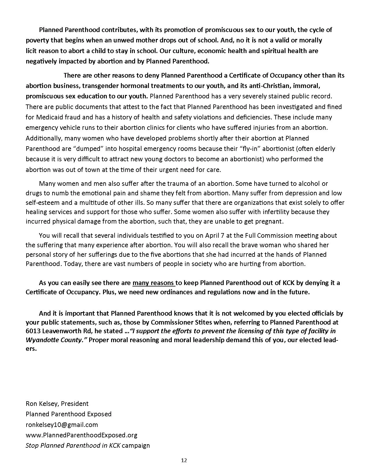 White Paper: The Case Against Planned Parenthood in KCK